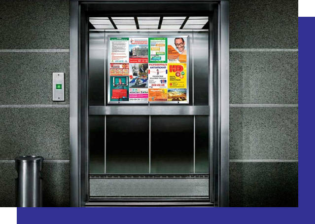 ООО «Партнер» — динамично и постоянно развивающаяся рекламная компания. Мы предлагаем размещение рекламы в лифтах с охватом аудитории по всему Тольятти. Ежедневно 85% жителей города, независимо от их социального статуса, уровня дохода и возраста, пользуются лифтами! РЕКЛАМА В КАБИНЕ ЛИФТА — это возможность размещения красочной имиджевой рекламы, реализации нестандартных подходов. Рекламу в лифте невозможно не заметить. Реклама в лифте — это сравнительно небольшие затраты на рекламу.